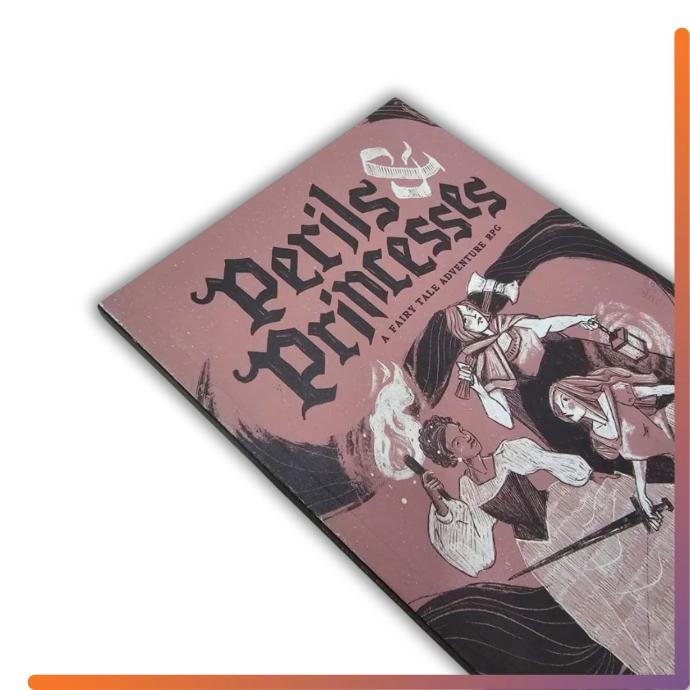 Perils & Princesses es un juego de rol de fantasía con aventuras de cuento de hadas: rudo y bonito al mismo tiempo, para 1–5 jugadores y una persona directora de juego. Endurece tu determinación, reúne tu gracia y afila tu ingenio… y quizá logres vivir feliz para siempre.